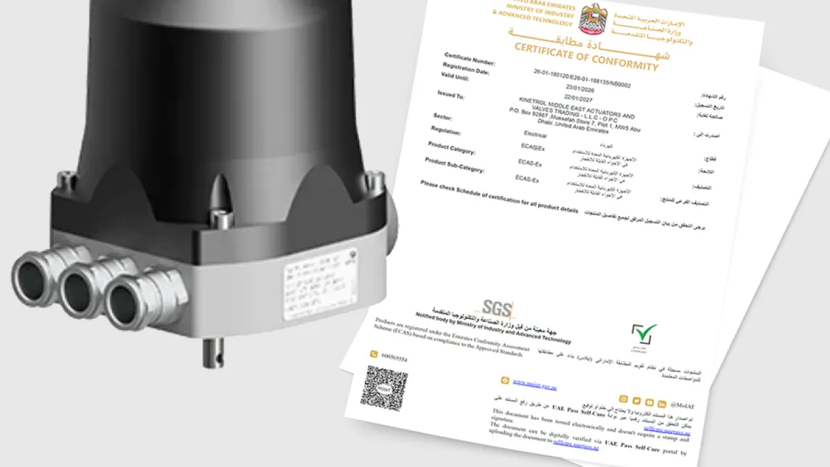 Die Zertifizierung der „ExTensor“-Serie ist das Ergebnis einer engen Zusammenarbeit zwischen Aris Stellantriebe und dem regionalen Vertriebspartner Kinetrol Middle East Actuators and Valves Trading. Gemeinsam wurde sichergestellt, dass die Stellantriebe den landesspezifischen Anforderungen entsprechen und rechtzeitig für 2026 zugelassen sind. Damit wird auch die regionale Versorgung mit sicherheitsrelevanter Automatisierungstechnik langfristig gestärkt.